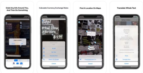 Aplikácia MemoCam dokáže pomocou fotoaparátu alebo z fotiek nasnímať množstvo dôležitých informácií, ako sú: telefónne čísla, emailové adresy, meny, čiarové kódy, adresy, dátumy alebo URL stránky a uložiť ich ako text, prípadne automaticky vytvoriť kontakt, poslať email vyhľadať informácie na internete…