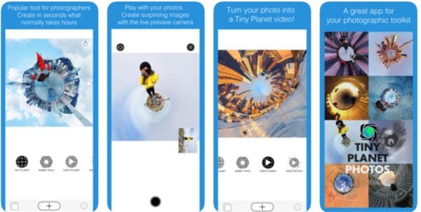 Tiny Planet Photos and Video je fotografický a video editor, ktorý má za úlohu zmenšiť krajinu okolo seba a pridáva efekt „rybieho oka“.