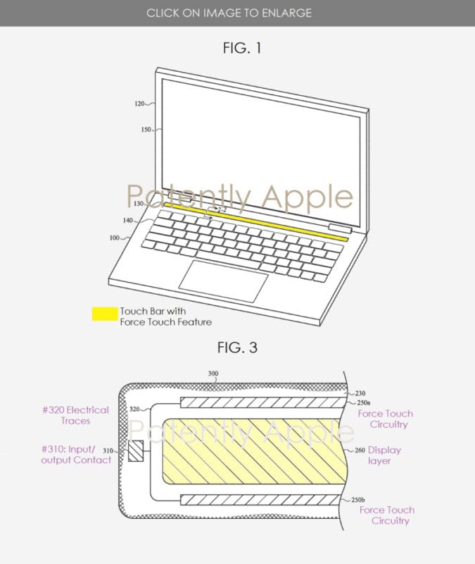 Apple však určite má ešte nejaké plány s touto technológiou, čoho dôkazom môže byť aj najnovší patent, ktorý si všimol portál Patently Apple. Patentová dokumentácia a nákres prezentuje MacBook s Touch Barom a pridanými obvodmi, ktoré umožňujú Force Touch.