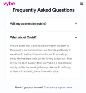Podľa FAQ (často kladených otázok) samotnej webovej stránky aplikácie si bola spoločnosť vedomá nebezpečenstva pandémie a bola vytvorená na to, aby propagovala „malé stretnutia“ a nie „obrovské párty akcie“.