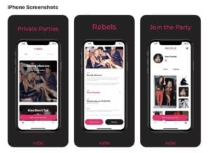 Aplikácia pod názvom „Vybe Together“ sa sama opisovala ako priestor pre organizovanie a navštevovanie tajných párty. Tak ako aj na svojej, už nefunkčnej web stránke, tak aj v aplikácií sa riadila heslom „Buď rebelom, buď na párty“.