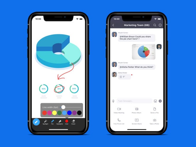 Pre začatie konfery stačí iniciovať míting a pozvať ľudí z vášho zoznamu konktatov. Apka funguje cez Wi-Fi, 4G LTE a 3G siete. Môžete v nej zdieľať a pripomienkovať obrazovky či aplikácie, či využiť implementovaný chat.