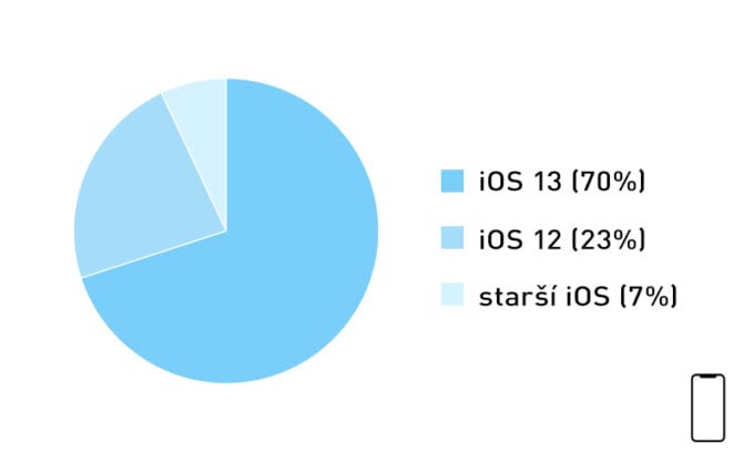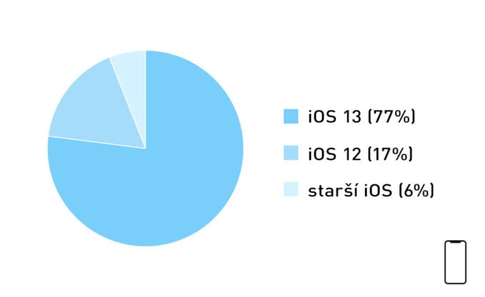Najnovšia generácia operačného systému sa podľa najnovších informácií nachádza na 77% iPhonov. 17% používateľov využíva iOS 12 a zvyšných 6% má na iPhone staršiu verziu systému. Ide o iPhone modely z obdobia posledných štyroch rokov. Ak vezmeme do úvahy všetky aktívne iPhony, má iOS 13 70%, iOS 12 23% a staršie iOS 7%.