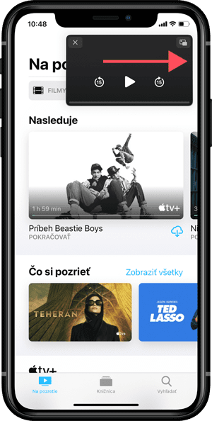 PiP viete aj celkom “upratať” cez swipe k okraju obrazovky. Video sa bude ďalej prehrávať a šípka na displeji vám naznačí, ktorým smerom stačí znovu swipnúť, aby ste sa k nemu vrátili.