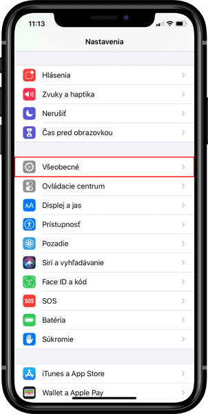 Otvorte si Nastavenia (Settings) a choďte do Všeobecné (General).