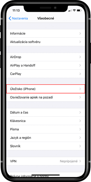 Tu si zvoľte Úložisko (iPhone) (iPhone Storage).