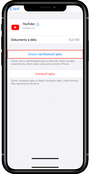 Následne uvidíte na mieste pôvodného Vymazať aplikáciu novú možnosť Znovu nainštalovať apku (Reinstall App). Krok opätovne nainštaluje apku, kde budete mať k dispozícii všetky pôvodné dáta.