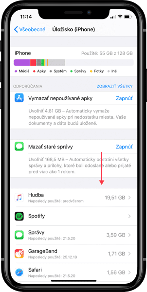 Tu si zvoľte Úložisko (iPhone) (iPhone Storage).