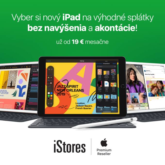 Najlepší čas na kúpu nového iPadu je práve teraz. Vyber si v iStores jeden z vybraných iPadov na splátky bez akontácie a navýšenia už od 19 € mesačne a k nemu doplnky, ktoré z neho urobia ešte šikovnejšieho a praktickejšieho pomocníka.