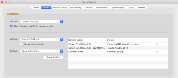 Obed platformy ponúknu niekoľko užitočných noviniek pre RAW formát. Môžete tak po novom meniť natívne nastavenia z Adobe Color pre využívanie špecifických profilov, resp. vašich vlastných predvolieb. Môžete tak ušetriť jeden krok, ktorý by na vás čakal po importe. Nastavenia môžu byť aplikované univerzálne cez Master alebo prispôsobené podľa modelu vášho fotoaparátu či sériového čísla.