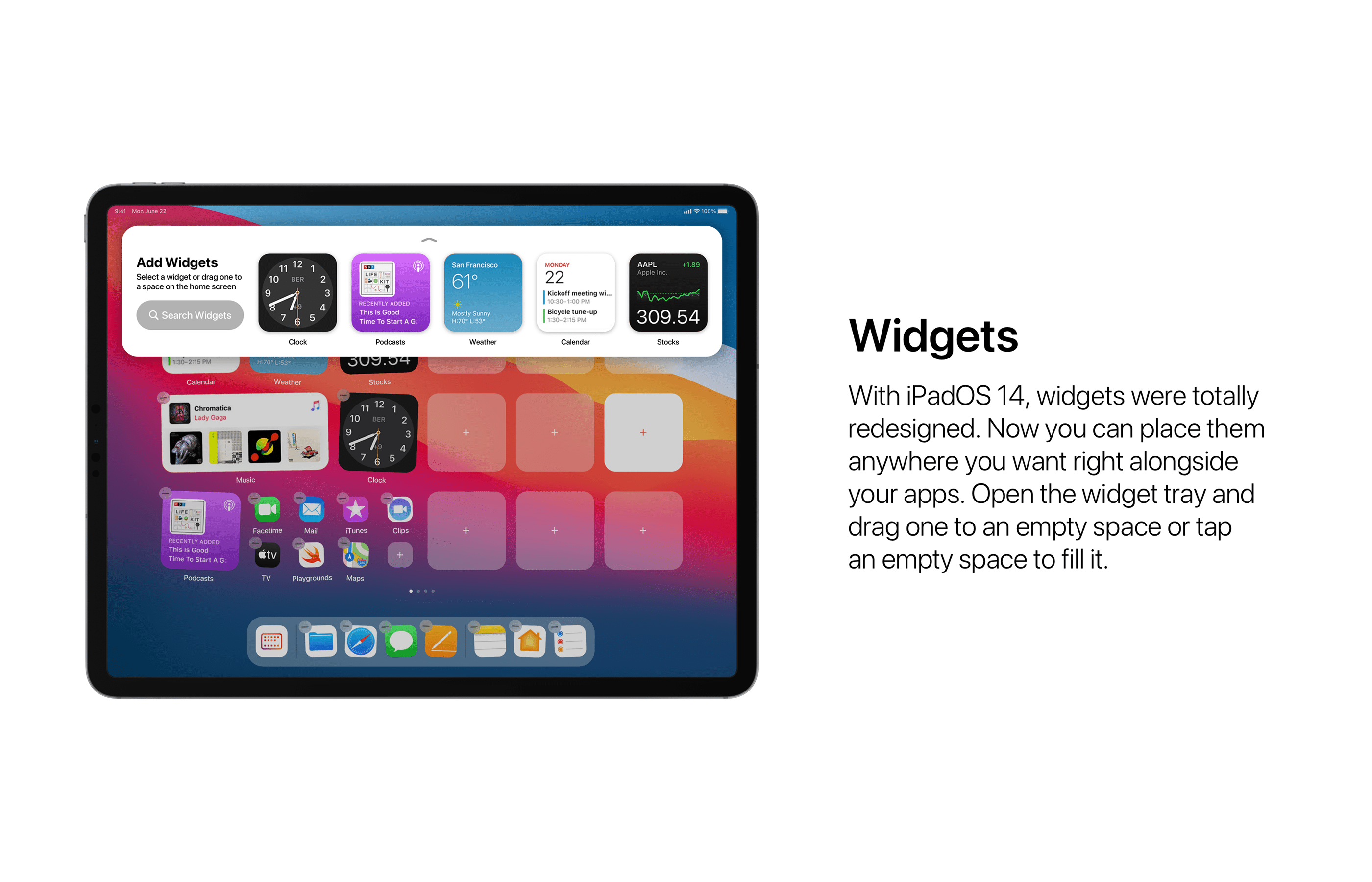 Očakávaný iPadOS 14 je aktuálne iba v beta štádiu a už teraz prichádza možná podoba novej verzie tohto operačného systému, ktorý Apple vyvíja špeciálne pre iPad portfólio. Vo svojom návrhu novej generácie iPadOS prezentuje Parker domovskú obrazovku na spôsob flexibilného rozhrania, ktoré je možné preskupiť a upraviť tak, aby vám to čo najlepšie vyhovovalo. Na ploche vidno widgety v kombinácii s ikonkami apiek, pričom tie sú veľkostne nastavené tak, že štvorica aplikácií zaberá rovnaký priestor ako jeden widget. Vďaka tomu by sa na jeden screen mohlo vojsť viac ikoniek ako doteraz. Widgety by bolo možné pridávať kamkoľvek na plochu a nakombinovať si výsledný layout spolu s ikonkami aplikácií podľa seba.