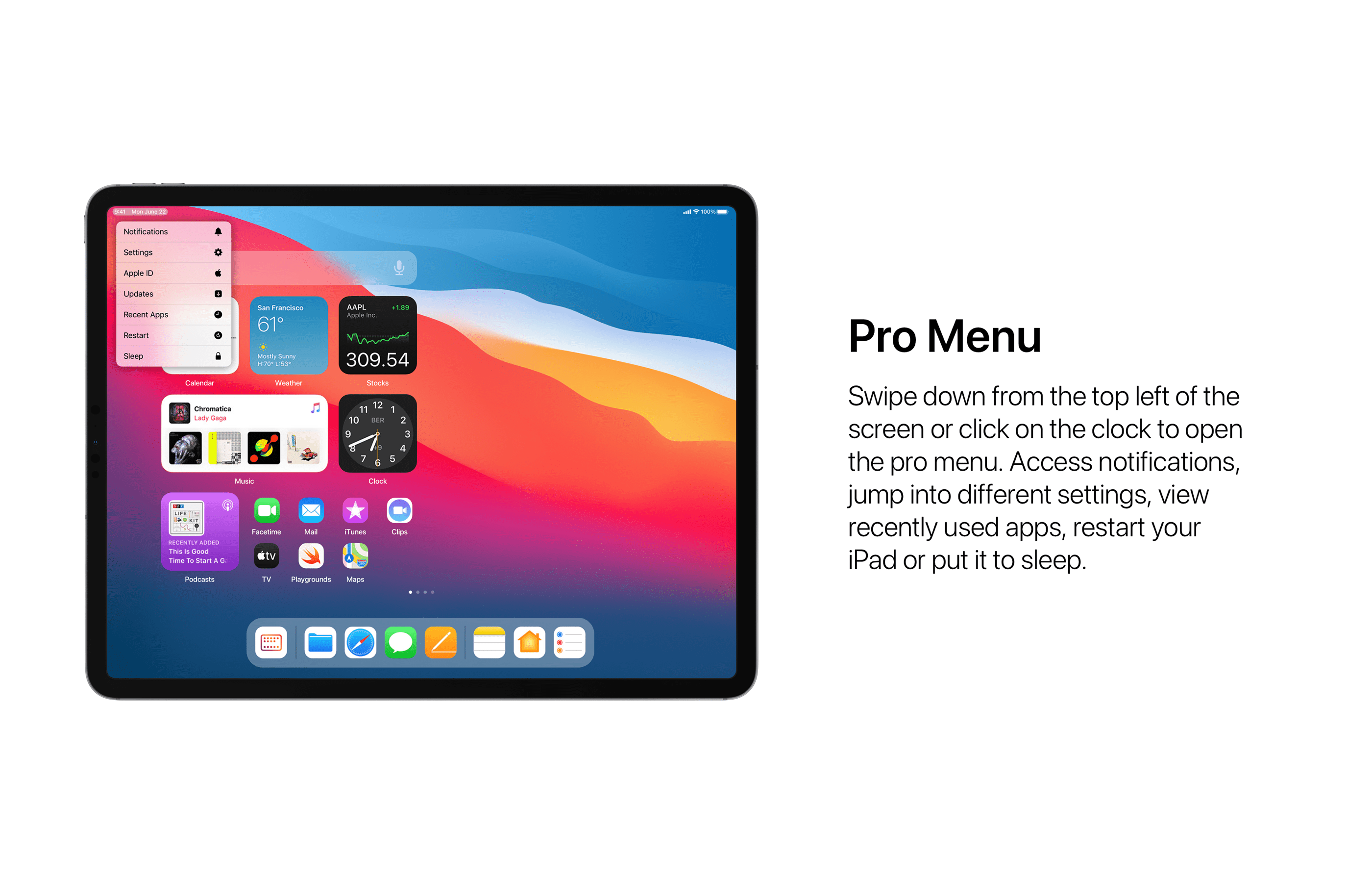 Novinkou je aj knižnica apiek, ktorá je prítomná ako ikonka na ľavom okraj docku. Pomocou nej by bolo možné vyvolať ponuku aplikácií, ktoré možno otvárať, presúvať na domovskú obrazovku či aktivovať režim Split View.