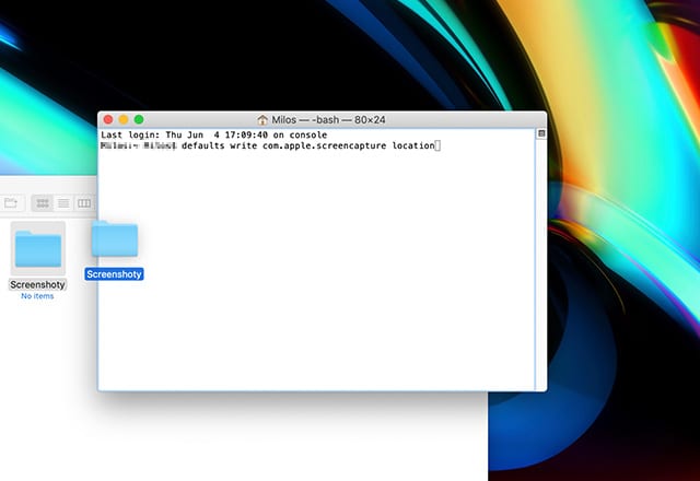 3. Do Terminalu zadajte nasledovný príkaz: defaults write com.apple.screencapture location. Nestláčajte zatiaľ Enter.