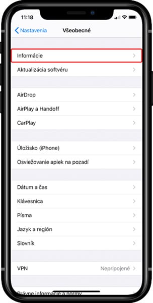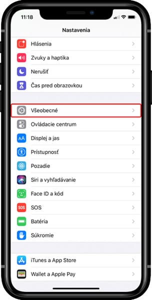 2. Na iOS zariadení si otvorte Nastavenia (Settings) a choďte do sekcie Všeobecné (General).