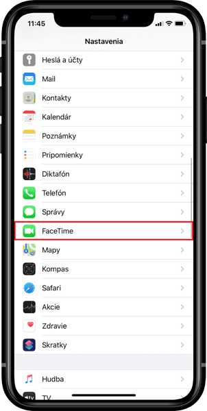 Otvorte si Nastavenia (Settings) a choďte do sekcie FaceTime.