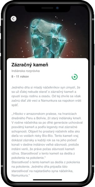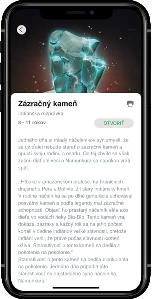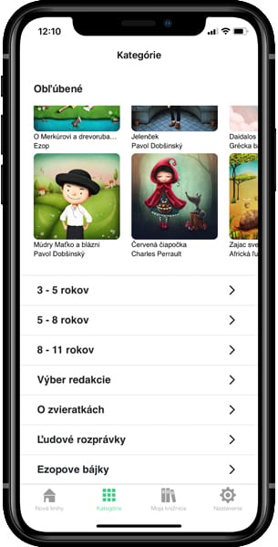 Rozprávky nájdete na domácej obrazovke alebo v záložke Kategórie. Po kliknutí na detail sa príbeh stiahne do vášho zariadenia.