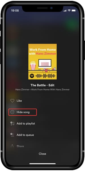 Stačí si otvoriť akýkoľvek playlist, nájsť pieseň, ktorá sa vám nepáči a ťuknúť na kontextové menu vpravo vedľa názvu skladby.