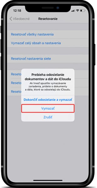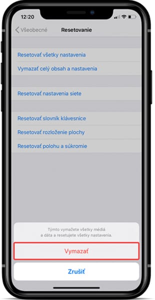 Teraz sa naposledy zobrazí otázka, či chcete naozaj vymazať celý obsah zariadenia. Ak ste si istý, zvoľte Vymazať (Erase iPhone).