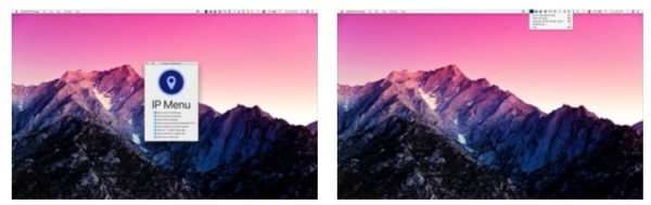Aplikácie IP Menu zobrazí vašu súkromnú a verejnú IP adresu v stavovom riadku.