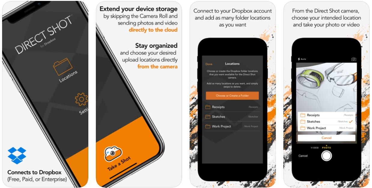 Aplikácia Direct Shot for Dropbox ukladá fotky a videá priamo do cloudového úložiska Dropbox, čím šetrí miesto.