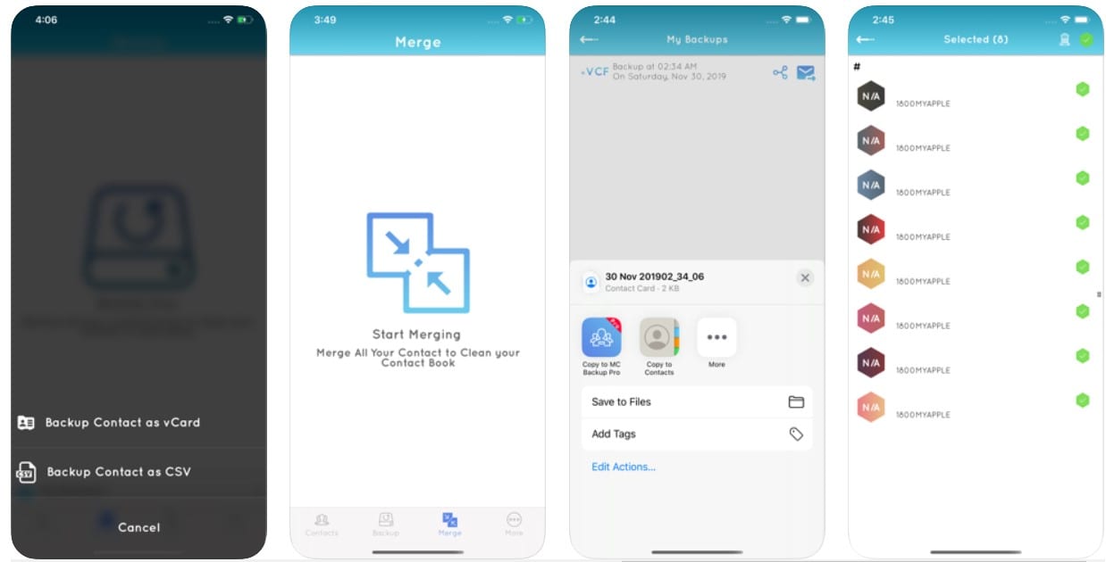 Pomocou aplikácie MCBackup Pro môžete jednoducho zálohovať a obnoviť všetky vaše kontakty. Aplikácia vie navyše vyhľadať a zlúčiť duplicitné kontakty, vymazať kontakty bez telefónneho čísla a zálohovať všetky kontakty jedným klepnutím.