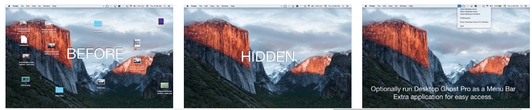 Aplikácia Desktop Ghost Pro vám umožňuje jedným kliknutím skryť a zobraziť všetky súbory na vašej ploche.