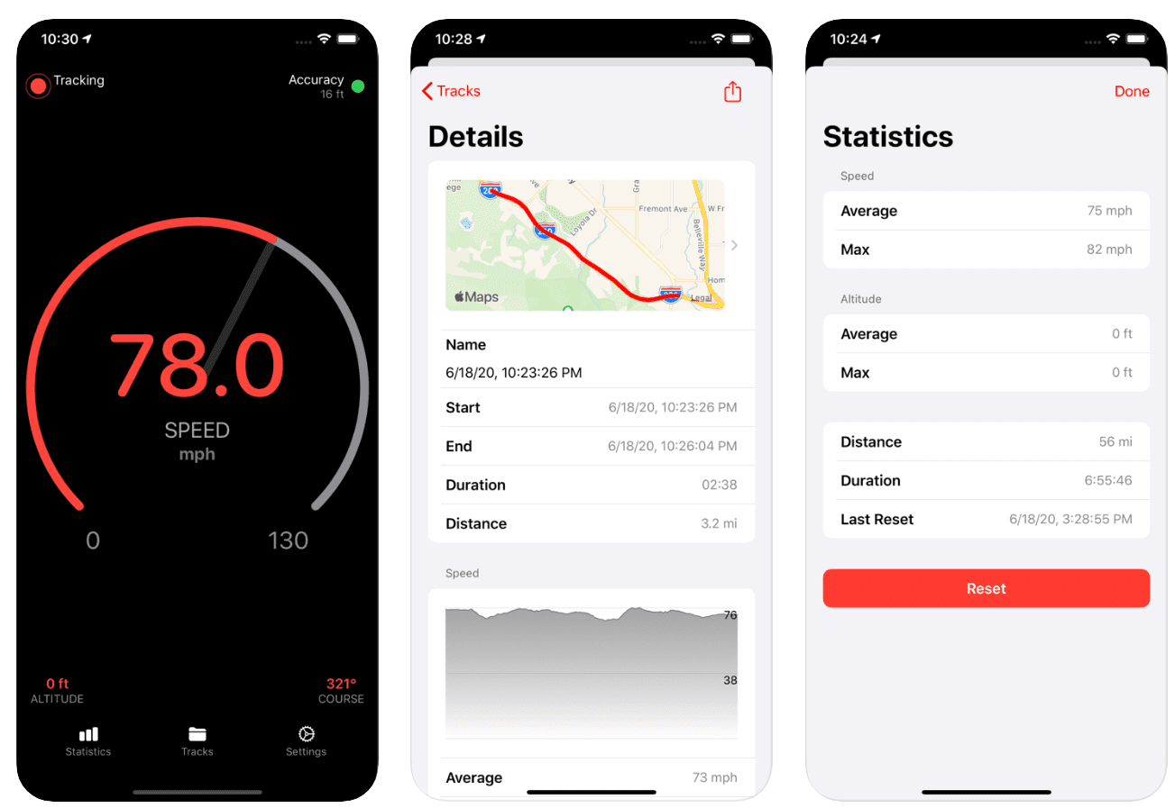 Speedometer View je aplikácia, ktorá zobrazuje vašu aktuálnu rýchlosť, priemernú a najvyššiu rýchlosť, prejdenú vzdialenosť a napríklad aj štatistiky akcelerácie a jej históriu.