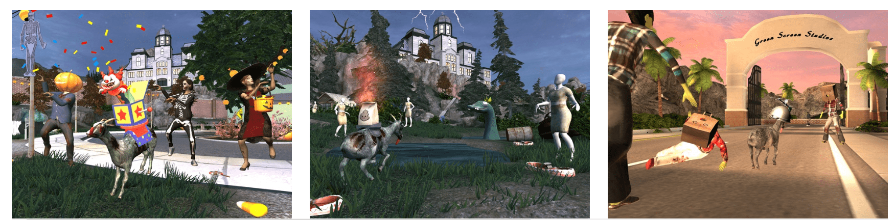Hra Goat Simulator celý o tom, ako napáchať čo najviac deštrukcie, ktorú je vôbec koza schopná napáchať. Dá sa to porovnávať s old-school “skejtovou” hrou, akurát, že namiesto skatera ste… kozou, a namiesto robenia trikov… ničíte všetko, čo sa dá. Ničte veci so štýlom, robte otočky počas naberania vedra na rohy pri skákaní z okna, a získavajte čo najväčší počet bodov!