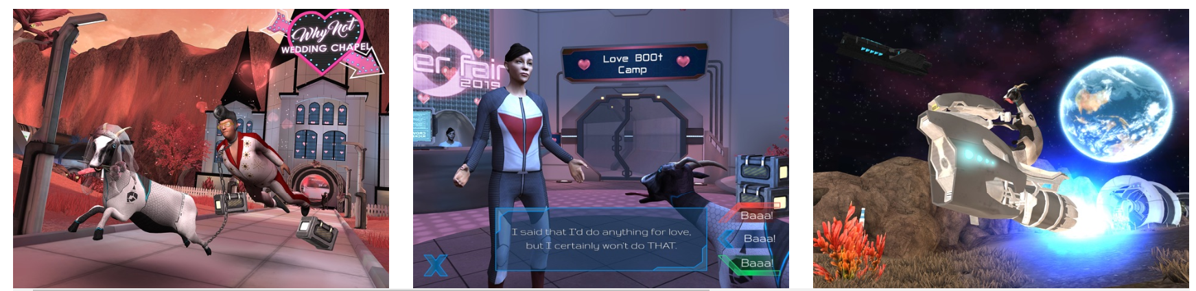 Goat Simulator: Waste of Space je akousi paródiou Star Wars a ďalšie sci-fi filmy a hry. Obsahuje detailne spracovanú vesmírnu kolóniu, planéty, ktoré sa dajú navštíviť… ak budete mať trpezlivosť k nim letieť, takže vám asi bude stačiť tá najbližšia. Hráči sa dočkajú doteraz najväčšej mapy v histórii simulátora kozy a môžu lietať a bojovať v otvorenom vesmíre a zažijú aj trochu rohatej romantiky.