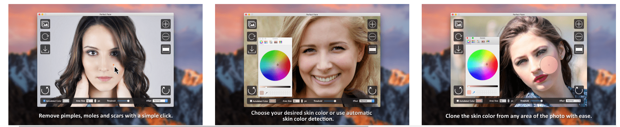 Aplikácia Perfect Face umožňuje odstrániť všetky nedokonalosti pleti z vašich fotografií.