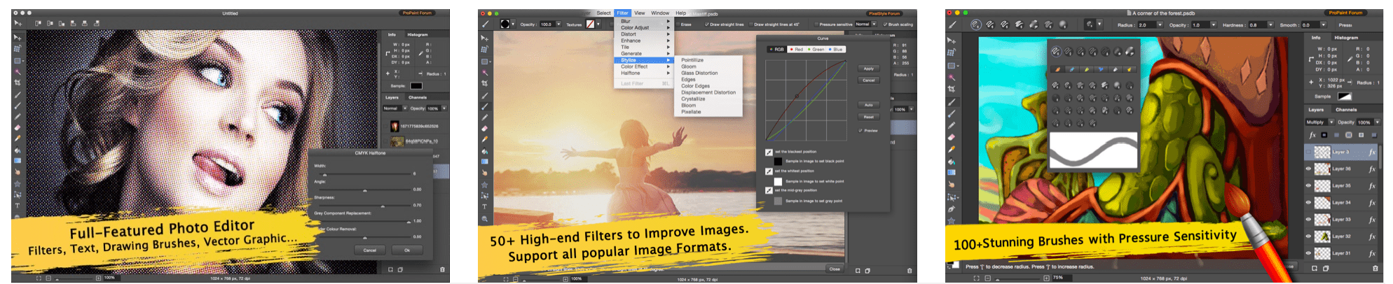 Pro Paint je editor fotografií, ktorý sa používa na úpravu obrázkov, vektorovú grafiku, úpravu alfa kanálov, kreslenie… Poskytuje vysoko kvalitné nástroje na prácu s obrázkami a na vytvorenie originálnej tvorby.