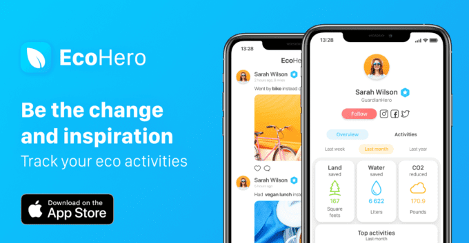 EcoHero vám ukáže, aký vplyv môžu zmeny každodenných návykov mať. Päť kilometrov dlhá cesta bicyklom namiesto autom môže ušetriť 1 kg CO2 a podobne. Aplikácia ponúka viacero oblastí, v ktorých môžete svoje ekologické ciele realizovať a sledovať.