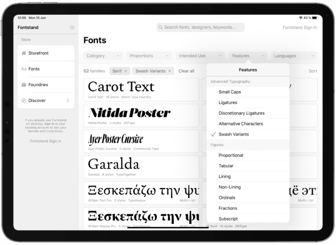Ako sme spomenuli v úvode, Fontstand ponúka kvalitné písma, čoho zárukou je participácia písmolejární ako Storm Type Foundry, Indian Type Foundry, XYZ Type, LudwigType, Setup, Typotherque, TypeRepublic a mnohé iné.