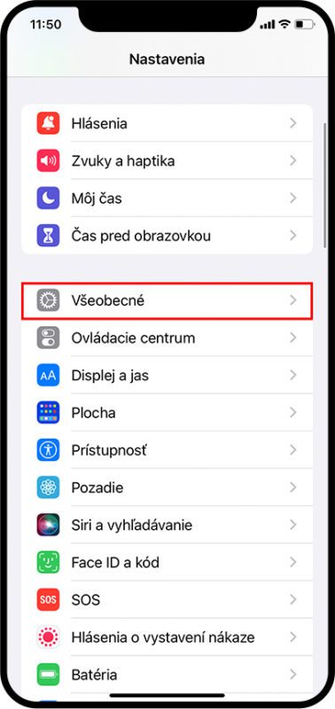 1. Prejdite do Nastavenia / Všeobecné (Settings / General).