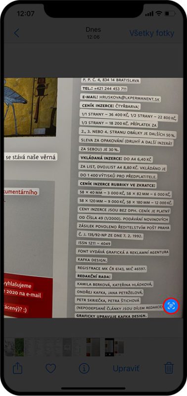 zabudli ste skopirovat a preloztit tento text: „You need an iPhone XS, iPhone XR, or later with iOS 15 to use Live Text.“