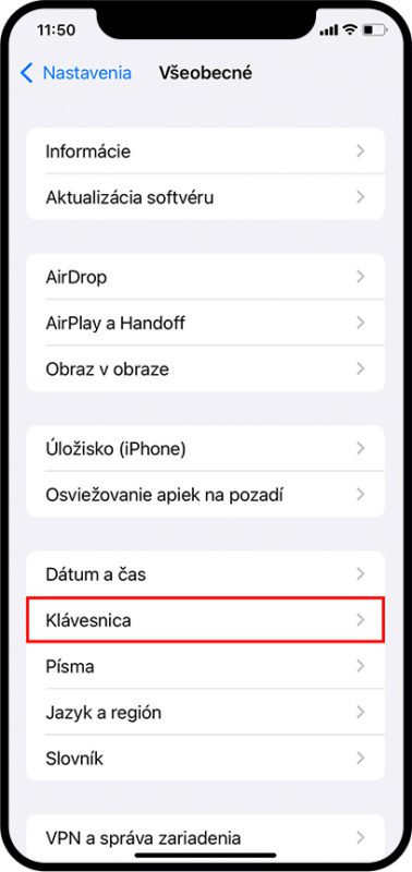 1. Prejdite do Nastavenia / Všeobecné (Settings / General).