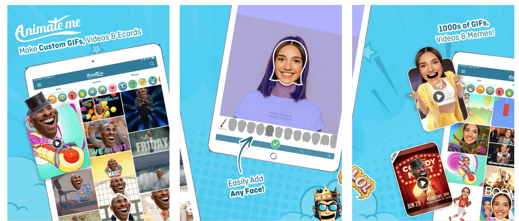 Pomocou aplikácie Animate Me je ľahké a zábavné vytvárať veselé GIF správy alebo videá. Stačí len pridať zvuk, nálepky a vytvoriť svoju animáciu, svojich priateľov, rodiny, domácich miláčikov alebo čokoľvek chcete.