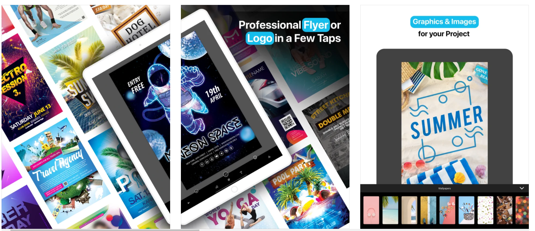 Vytvorte pomocou aplikácie Create Flyers & Logos profesionálne unikátne letáky, pozvánky, prezentácie, návrhy, logá, udalosti, karty pre vaše večierky, kluby, udalosti …
