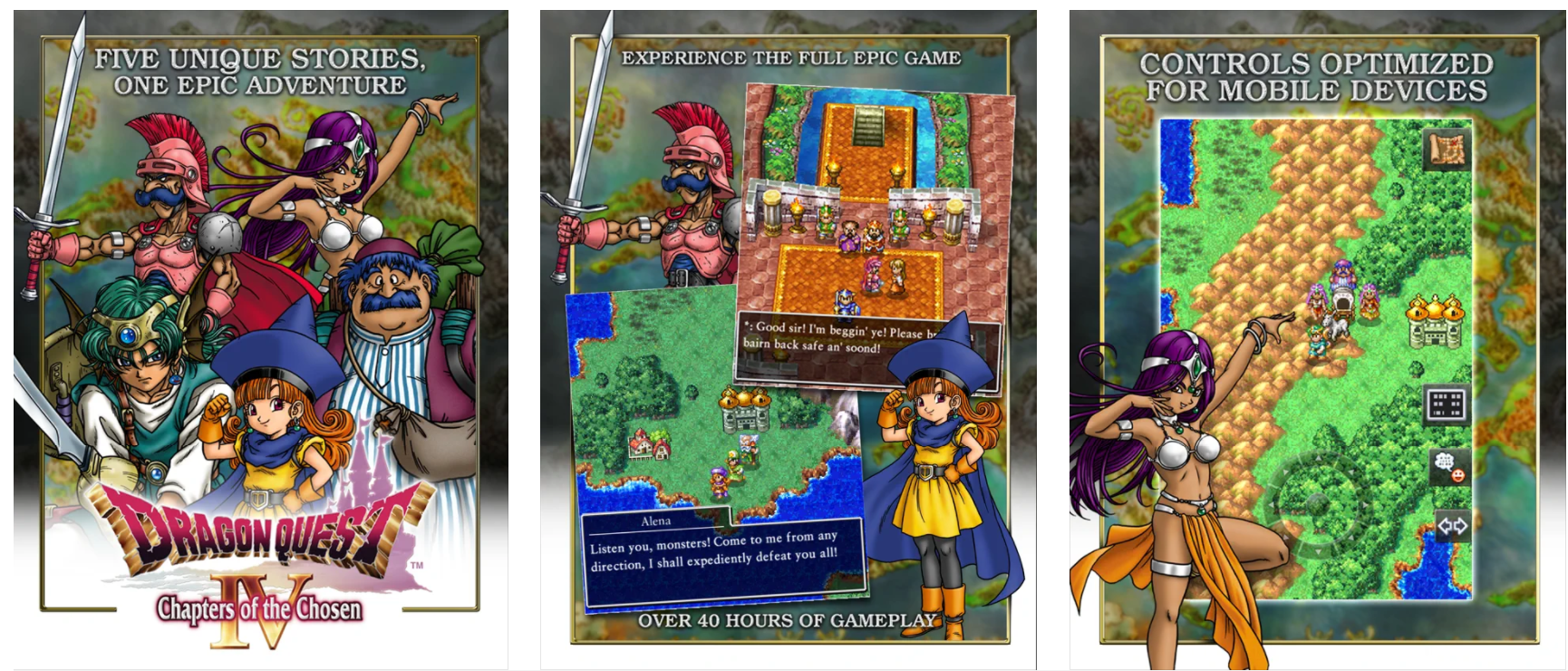 DRAGON QUEST IV je populárna japonská RPG hra. Príbeh v Dragon Quest IV je rozdelený do piatich rozličných kapitol, z ktorých každá sa zameriava na iného protagonistu. Prvé štyri kapitoly sú rozprávané z perspektívy budúcich spoločníkov hlavného hrdinu. Až v piatej kapitole sa všetci stretávajú a začínajú spoločne svoju cestu k záchrane sveta.