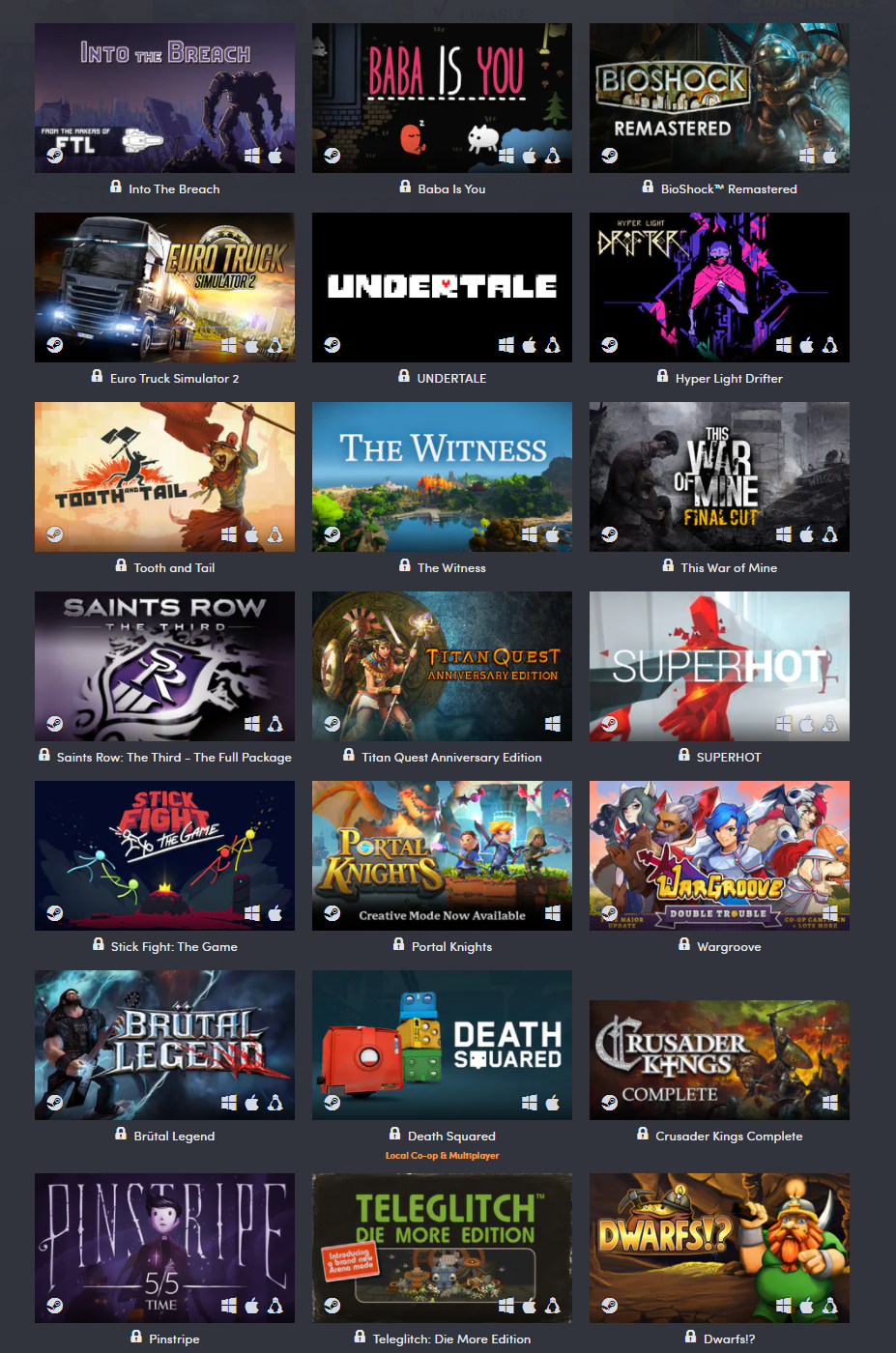 Z hier dostupných pre macOS môžeme vypichnúť BioShock Remastered, Euro Truck Simulator 2 alebo SUPERHOT, plus balík obsahuje ďalších 14 hier pre macOS: