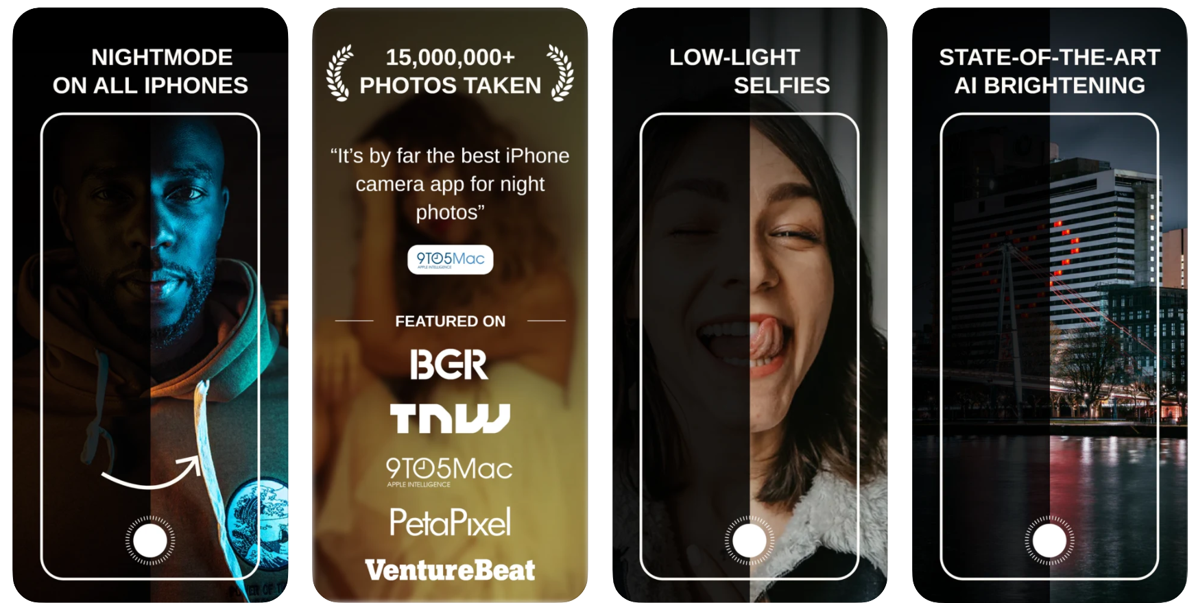 NeuralCam je najlepšia aplikácia pre nočný režim podľa: 9to5mac / VentureBeat / TheNextWeb / BGR / PetaPixel / DPReview / SlashGear / LAUNCH Ticker.