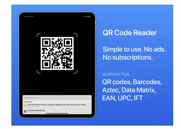 Jednoduchý skener QR kódu bez reklám, nákupov v aplikácii, predplatného alebo porušenia ochrany osobných údajov.