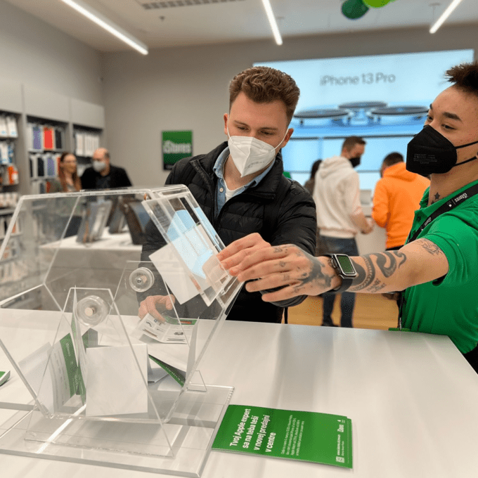 Napríklad iPhone už od 399 €, Apple Watch od 259 €, MacBook od 919 € a množstvo príslušenstva za špeciálne ceny. Niektoré produkty budú v akciovej ponuke iba v limitovaných množstvách (MacBook Air a AirPody). Každý, kto nakúpi sa môže zapojiť do súťaže o MacBook Air s čipom M1.