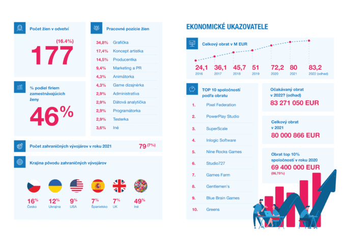 V roku 2021 dosiahli tvorcovia hier na Slovensku obrat 80 miliónov EUR, pričom najväčších 10% spoločností sa na celkovom obrate podieľa čiastkou 69,4 miliónov EUR. Oproti minulému roku sa podiel obratovo najvýkonnejších spoločnosti v pomere ku zvyšku takmer vôbec nezmenil. Podobným tempom teda narastajú aj obraty stredne veľkých a malých podnikateľov v tomto segmente.