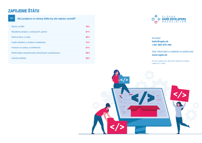 Segment tvorby digitalnych hier a pridružených služieb na Slovensku kontinuálne rastie už niekoľko rokov, vyplýva z aktualizovaného prieskumu s názvom Slovenský herný priemysel v roku 2022, vydaného občianskym združením Slovak Game Developer Association (SGDA).