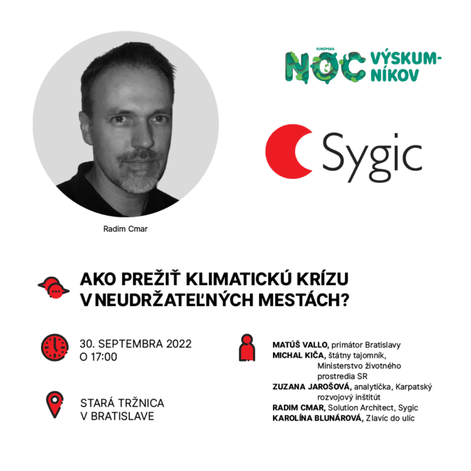 O 17:00 Sygic pozýva ku hlavnému pódiu v Starej tržnici, kde sa uskutoční diskusia „Ako prežiť klimatickú krízu v neudržateľných mestách?“. Jej účastníkmi budú: