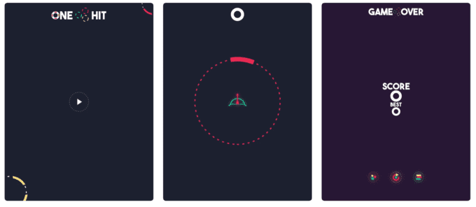 One Hit je vysoko návyková hra. Vašou úlohou je zasiahnuť rotujúce terče. Zdá sa to ľahké, však? Ale máte len jeden výstrel! Ak nemáte možnosť výstrelu, skončili ste.