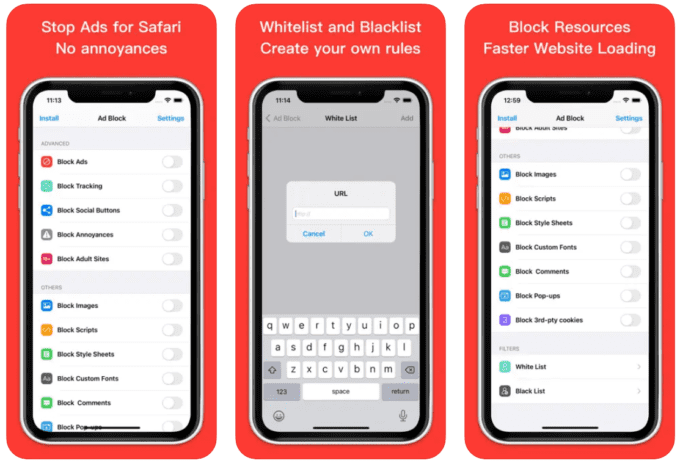 Aplikácia Ad blocker je vašou najlepšou voľbou na blokovanie reklám pre Safari. Blokuje všetky otravné reklamy, vyskakovacie bannery, sledovače, nepotrebné zdroje.. . Ad blocker nielenže odstraňuje otravné reklamy, ale chráni aj vaše súkromie.