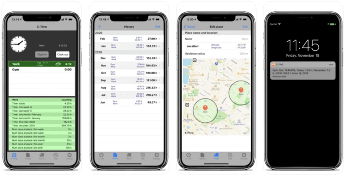 Váš čas je vzácny. C-Time je aplikácia, ktorá vám pomôže zistiť, koľko zo svojho drahocenného času trávite na určitých miestach. Premýšľali ste niekedy nad tým, koľko času trávite v práci, v škole alebo v telocvični? To všetko funguje automaticky, bez potreby spúšťať aplikáciu a stláčať akékoľvek tlačidlo. Kedykoľvek idete autom, alebo kráčate na vami definované miesta, C-Time zaregistruje vaše zadanie a začne počítať čas, ktorý strávite na tomto mieste.