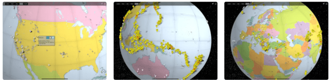 Aplikácia Tremor Tracker zobrazuje informácie o zemetraseniach na interaktívnej mape.